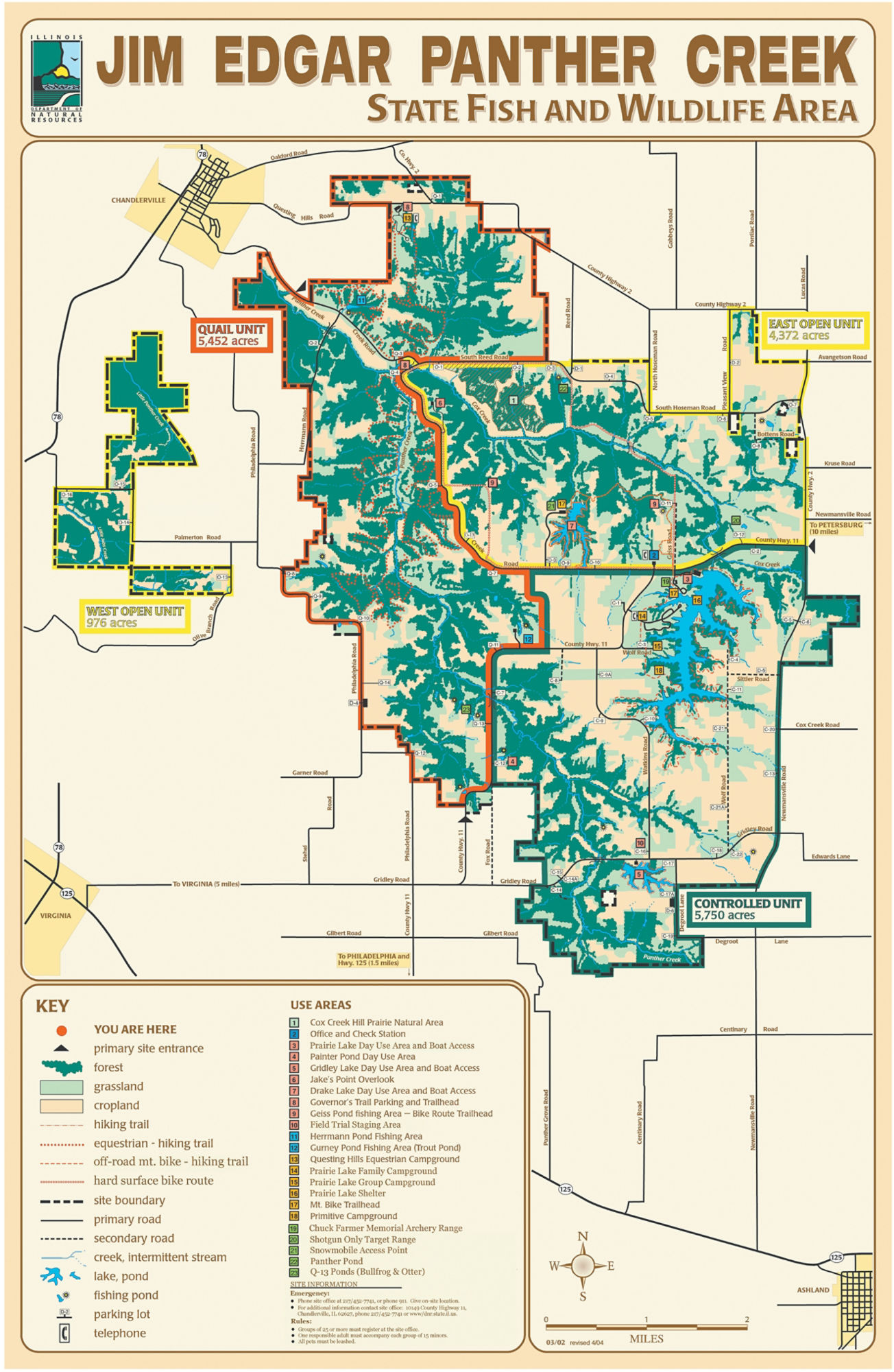 One of Illinois' largest public access areas, Jim Edgar Panther Creek State Fish and Wildlife Area (JEPC) in central Illinois is a mosaic of mature forest land, agricultural land, grassland and rare hill prairie that is home to a rich assortment of wildlife.